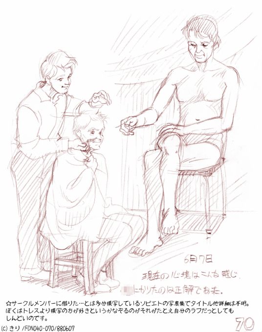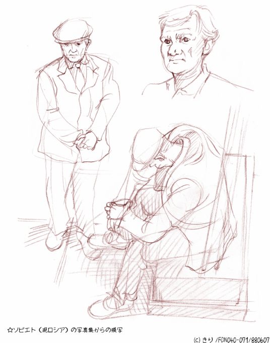 ☆ らくがき ☆ <FDN040・1988> ソビエトの写真集模写続き 模写もまぁいいよね〜とか思うのよ。少なくともトレスよりは面白い。まぁもっと面白いのがスケッチだけど人物スケッチは今はモデル雇わないといけないくらい状況悪化してる。街角で人物スケッチは確実に逮捕案件_| ̄|○ なんかそれ戦時中みたいだが世の中それだけヤバくなってるのも事実。