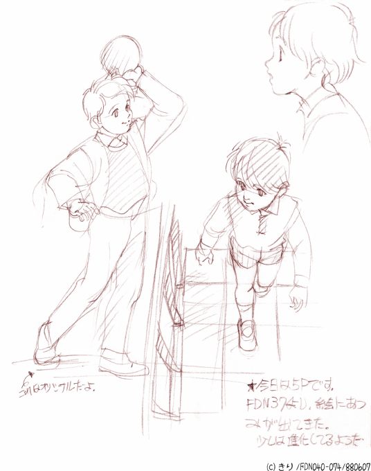 <FDN037・1987> こっちはガリガリで硬いの_| ̄|○ (再掲) 上の一年前の男の子達。筋肉質でぷにぷにしてないの線も無駄に多いし_| ̄|○ この時期とある事に挫折して次どうするべか〜と考えてた時に同人誌でもうめっちゃ好きになった作家さんが現れて、ああ、この人に勝ちたい(・`ω´・)ノ なんておこがましい情熱が芽生えたときに高校の後輩達が同人誌サークル立ち上げるという事を話していたのでそこに介入してじゃあやるべヽ(゚∀゚)ノ という流れになった。