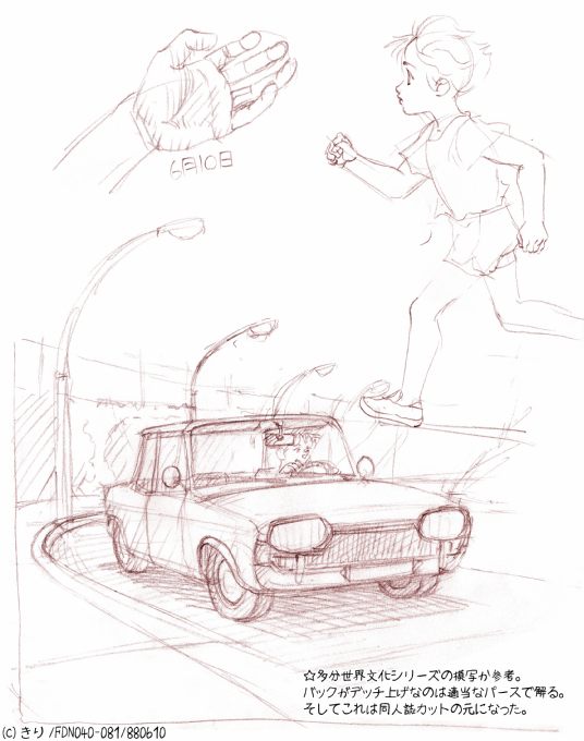☆ らくがき ☆ <FDN040・1988> 多分きっと模写の車 これも世界文化シリーズからだと思うが・・・少年はオリジナル?そして左手は自分の(*^_^*) 手くらいは自分の手でやろうねヽ(゚∀゚)ノ まぁその場合右手が・・・というのはあるんだけど、こういうのも模写や特にトレスやるのは・・・と思うのだが?
