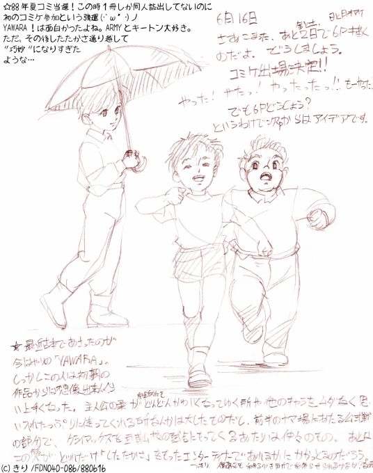 ☆ らくがき ☆ <FDN040・1988> コミケに当選しちゃったヽ(゚∀゚)ノ まさか、まさかのコミケ当選。実績的にはコミティアに出した1冊のコピー本だけだからマジで運。ほんと、こういう事もあるんですよ(*^_^*)