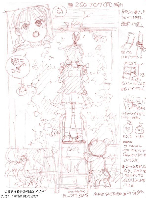 ☆ らくがき ☆ <FDN128・2025> 遂に届かなくなったよヽ(゚∀゚)ノ 実家で20年前膝下までしかなかった低木?が木になってきたよ。綺麗に刈り込んでも根が張ってるから巨大化していくよヽ(゚∀゚)ノ さてどうしたもんか?というらくがき。あとは東京からパイプカッター持って来て実家の金属パイプ系のアイテム切り刻んで不燃ゴミに出したり。