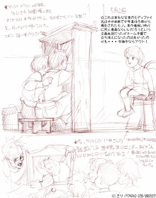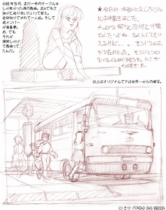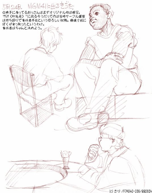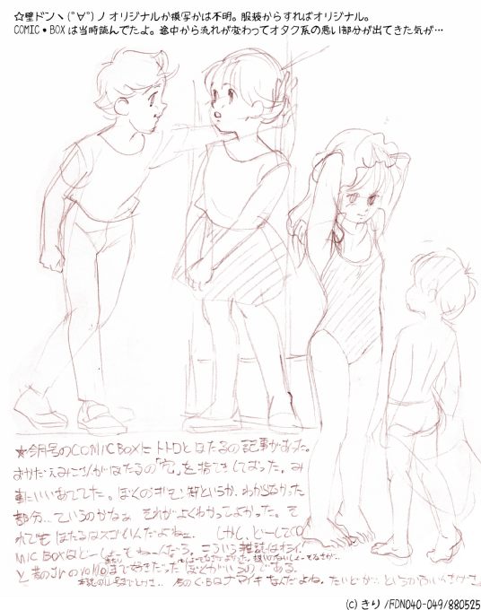 FDNの過去ネタ、とりあえずFDN040(88年)でやろうかと。030と050は公開済だしでその次が060と行きたい所だが060と061は丸々一冊ロボット物の企画とネーム。だったらかつてのらくがき本の元が入ってる059がいいかも。次が072で・・・80番代と90番代はまともなのが無い_| ̄|○ まぁ誰も見てないんだから数字にこだわらず良さそうなのを適当にチョイスしていくか。